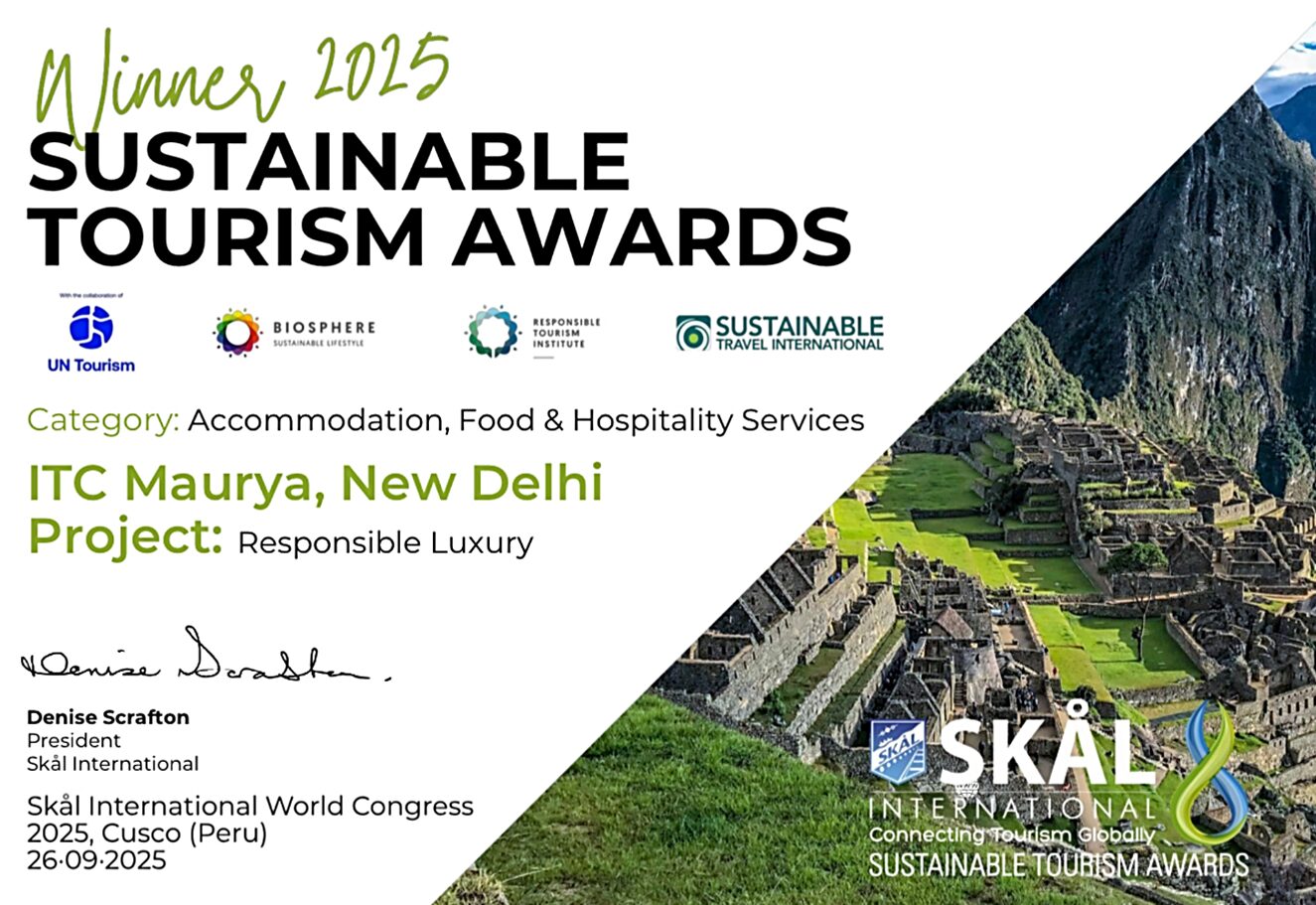 9月25~30日にペルーのクスコでSKÅL(スコール)の第85回国際会合が開催され、部門別取り組みの表彰式が行われました。「ホテル・サステナビリティ部門」では、参加した世界109の5つ星ホテルの中で、インドのITC Maurya (マウリヤ)が優勝、またITC Royal Bengal が2位を獲得するという栄誉に輝きました。